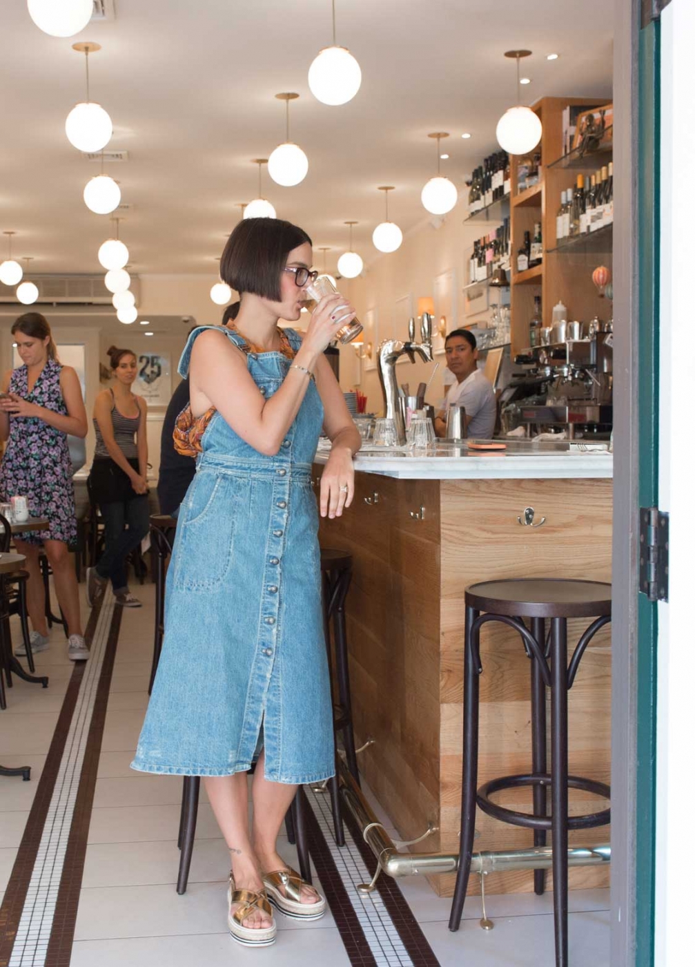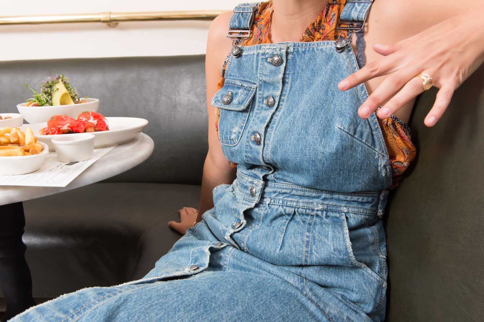 If you follow Jack’s Wife Freda on Instagram (@jackswifefreda), then you know that Maya Jankelowitz, who owns the downtown New York restaurants with her husband Dean, has a damn good denim collection. Scroll through: There she is in Frame’s flared overalls, and in the fringe-hemmed boyfriends by Junya Watanabe, and with Man Repeller’s Leandra Medine in almost-matching denim-on-denim with stripes. So chic. I cried “Uncle” when, six weeks ago, Maya posted a pic of herself outside of JWF’s crowded Carmine street location wearing the sweetest button-front denim dress. That’s it, I said to Florence, we have to shoot this woman and her jeans!