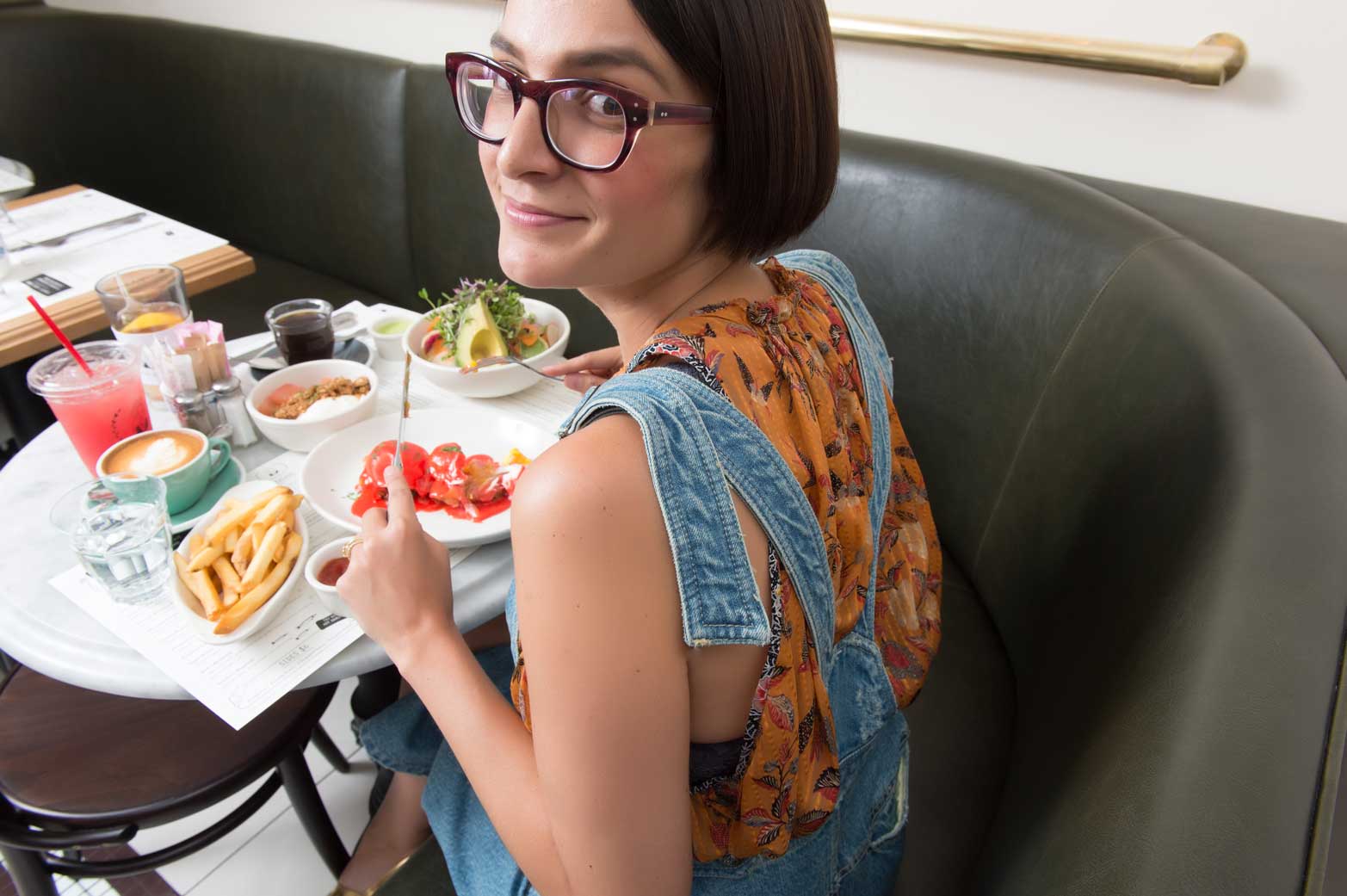 It can also be perfect for brunch, as Maya proved after ordering some of her favorites from the JWF menu – french fries, house salad, and their signature Eggs Benny (poached eggs on smoked salmon slathered in beet hollandaise), with a tall glass of summertime watermelon juice. Delicious!
