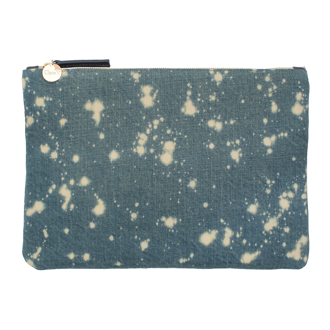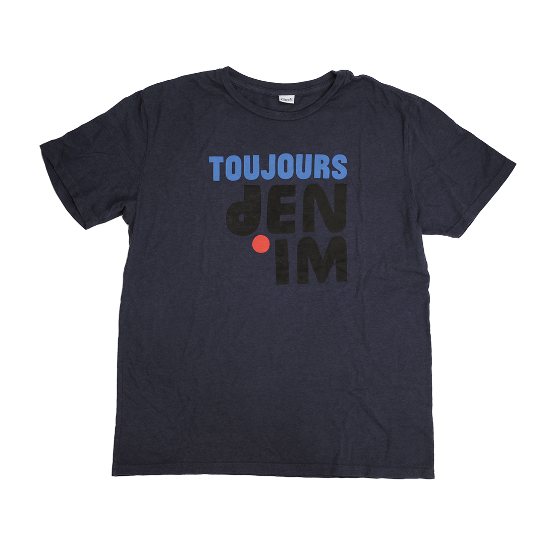 Then, we kept talking about exactly what we wanted to make out of this amazing denim we just got to witness being made. Jane and I carry our MacBook Pros all over the city. And Clare travels a lot (after NC she caught a flight to Istanbul). So we wanted pieces that were great for being on the go. And Jane and I love Clare’s pouches (to put it mildly), so there had to be one of those. The results: a tote both in white and indigo, a fannypack, selvage catch-all and card case, a washed pouch cleverly bleached and a tee with our newly minted motto, “Toujours Denim.”