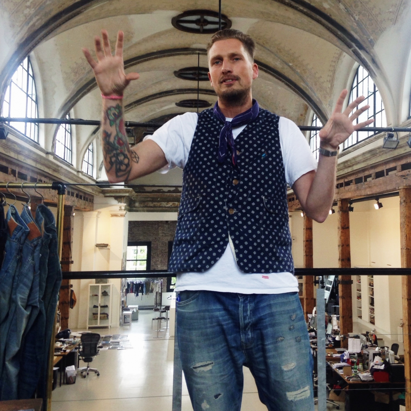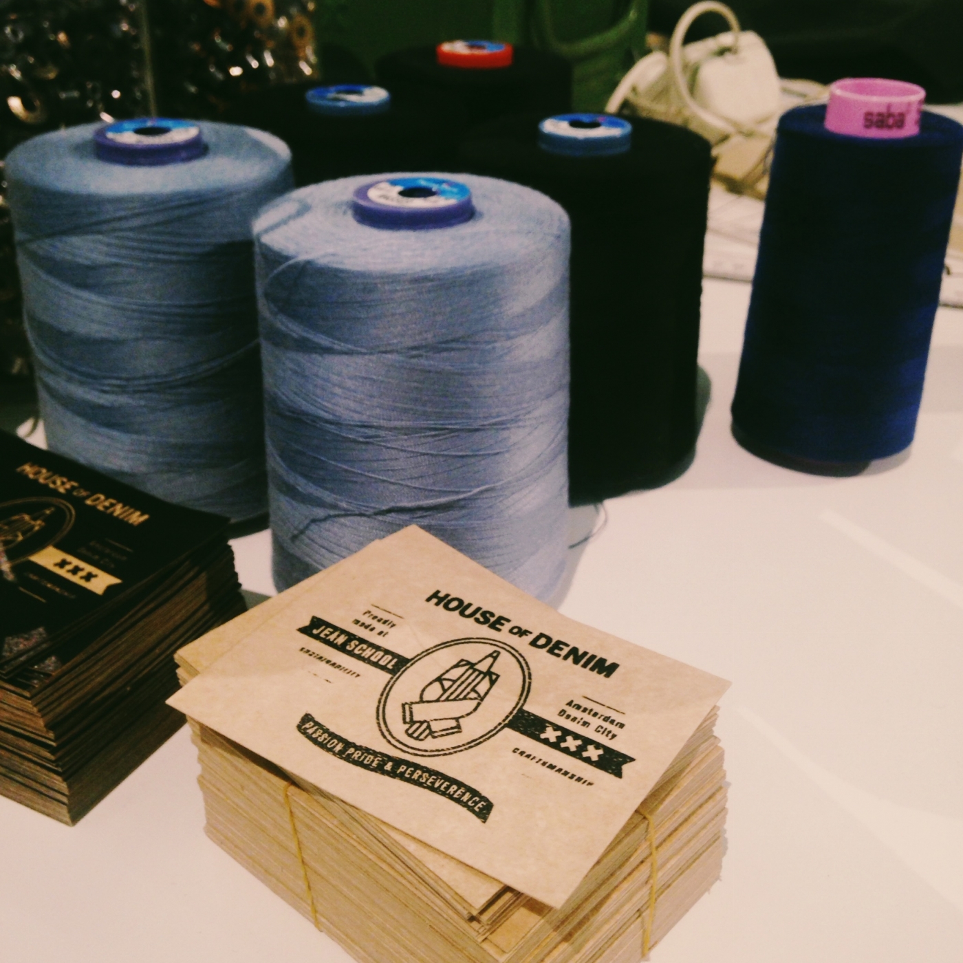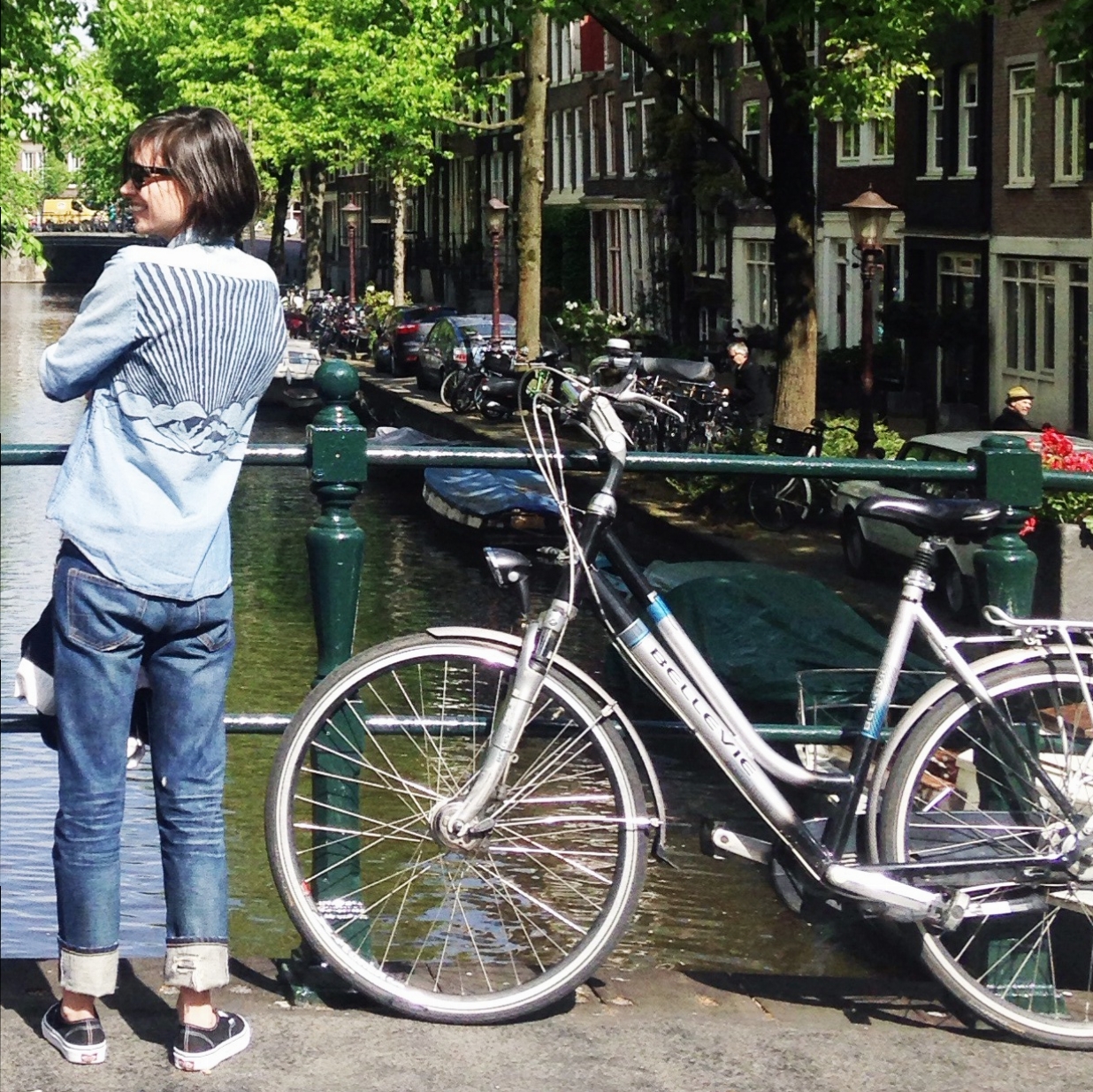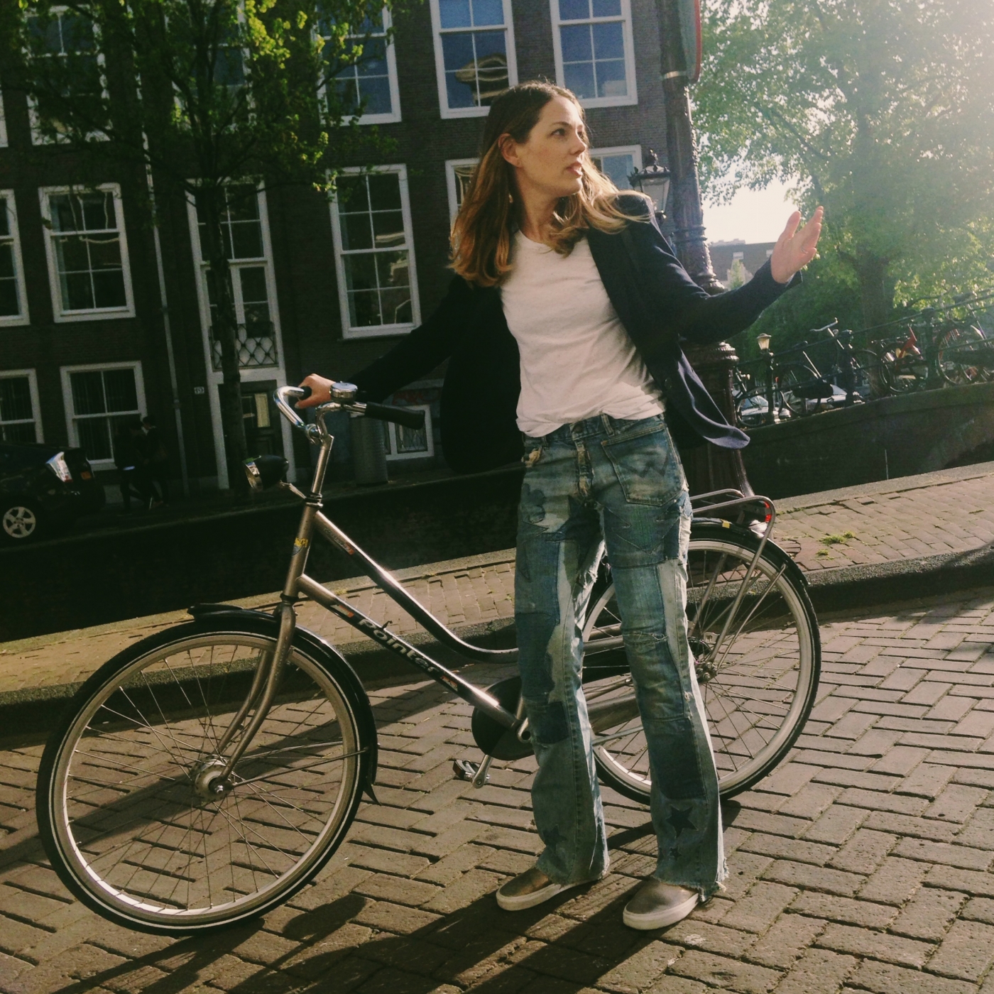 But there was a lot of other stuff to see! It was Denim Days! We took a boat all the way through the canals and out to G-Star’s new mothership, an OMA-designed building outside the city center, with their global brand manager Remco de Nijs; the Jean Stories team hung out with Jason Denham, the Brit transplant and founder of Denham; We met Alex Jaspers, who designs Amsterdam Blauw (Scotch & Soda’s denim line; named for that beautiful shade of blue you find on Dutch pottery); We visited the Jean School, where university students – possibly the cutest in all of the Netherlands – study the art of denim design. We attended Blueprint, a two-day denim festival where vintage dealers and denimheads shared their wares. We did the touristy stuff: rode bikes, sampled apple pie, ate Indonesian food (our favorite of the trip), ducked into a Brown Café (no, not that kind of café) during a rain storm – Jane was regaled with tales and YouTube videos of Bill Clinton visiting the same one. We also went to a party for visiting denim dignitaries at the Mayor’s house – kind of a big deal. The invitation called for ladies to wear “nice dress.” We wore jeans. But we got a pass on that one.