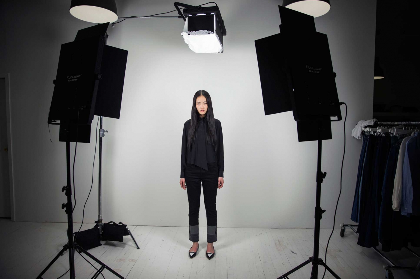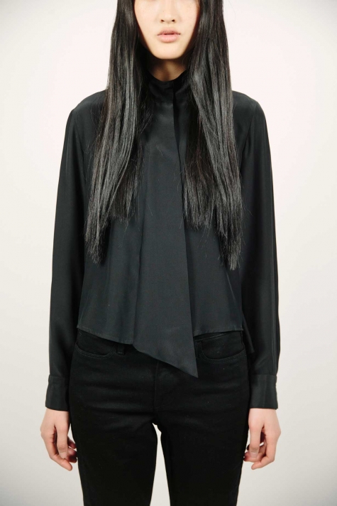 It wasn’t totally a surprise, because they’d very kindly had us over the afternoon before to preview it all during their model fittings with stylist Ludivine Poiblanc (her take on the black jean: “It’s like a uniform.” So true). Right off the bat, they’d told us the theme of the season is “back to black,” – not the song; sorry if it’s stuck in your head now – and not back in a retro way. “Frame is all about the future,” Jens told us. Which is why Frame is moving beyond jeans with a collection of shirts, from a white silk tuxedo top to a blue denim Western style – “more modern, less cowboy,” says Nico – which will no doubt sell out in about, oh, a second once it hits stores.