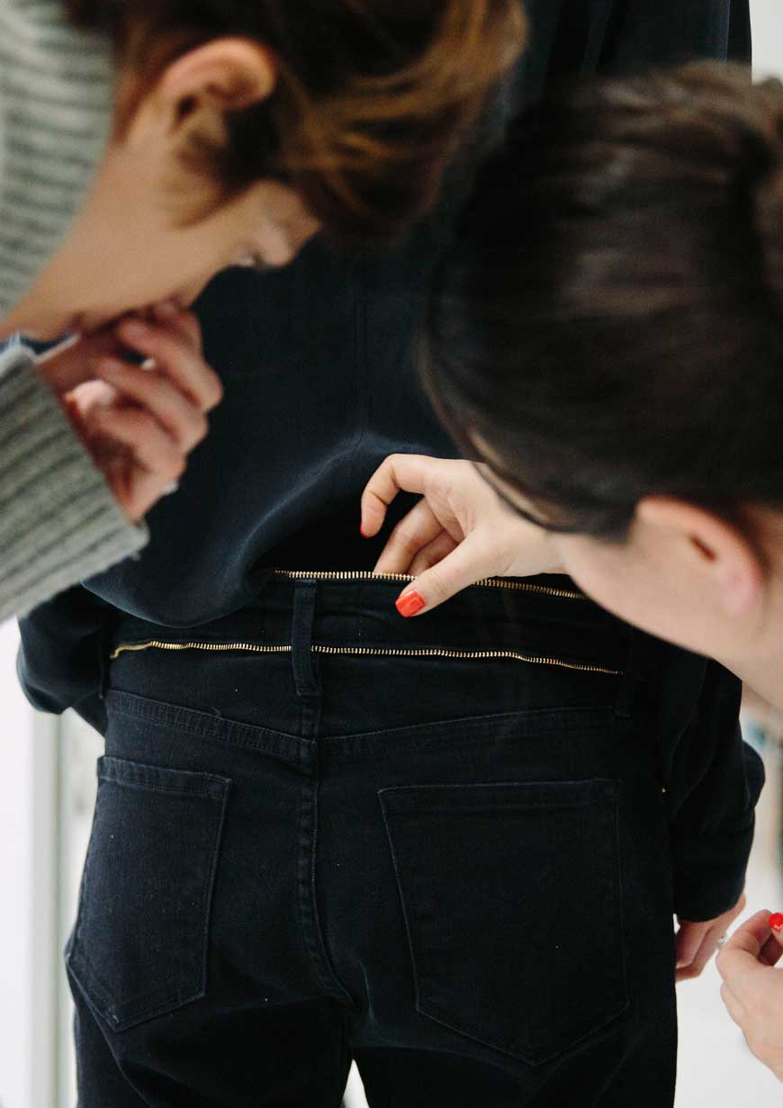 Also cool for fall: a new pencil skirt silhouette and the use of zippers as embellishment (ie. on that skirt or around the waistband of a skinny jean). “We design for women we’re attracted to,” Jens told us at the presentation. “And things we want to wear.” Yes, that’s correct. Frame is also introducing men’s jeans this fall. Which means Erik can switch over from the Dior denims he’s worn to death (there was a ripping incident at the fitting, in fact), and Jens can trade in the Acne Hexes he’s been devoted to for ten years. It’s a new frontier.