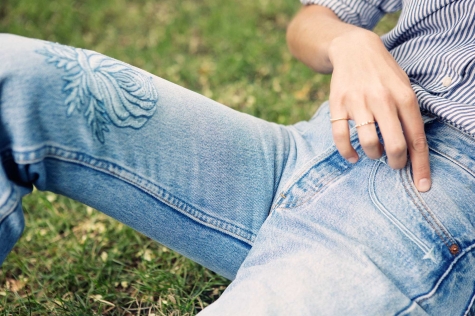 Needless to say, Erin’s jeans never made it to a farm – sorry! The second I had them – a more petite Student edition of the 501 that fit me perfectly, as perfectly as Jessica de Ruiter’s vintage Levi’s fit her (which says a lot) – I sent them directly to L.A. to Hillary to be embroidered. Oh wait, no, I e-mailed Erin to get her okay first. “You absolutely don’t need my permission, but I can only imagine how rad she would make those little guys,” Erin replied. And make them rad she did (click for close-ups):