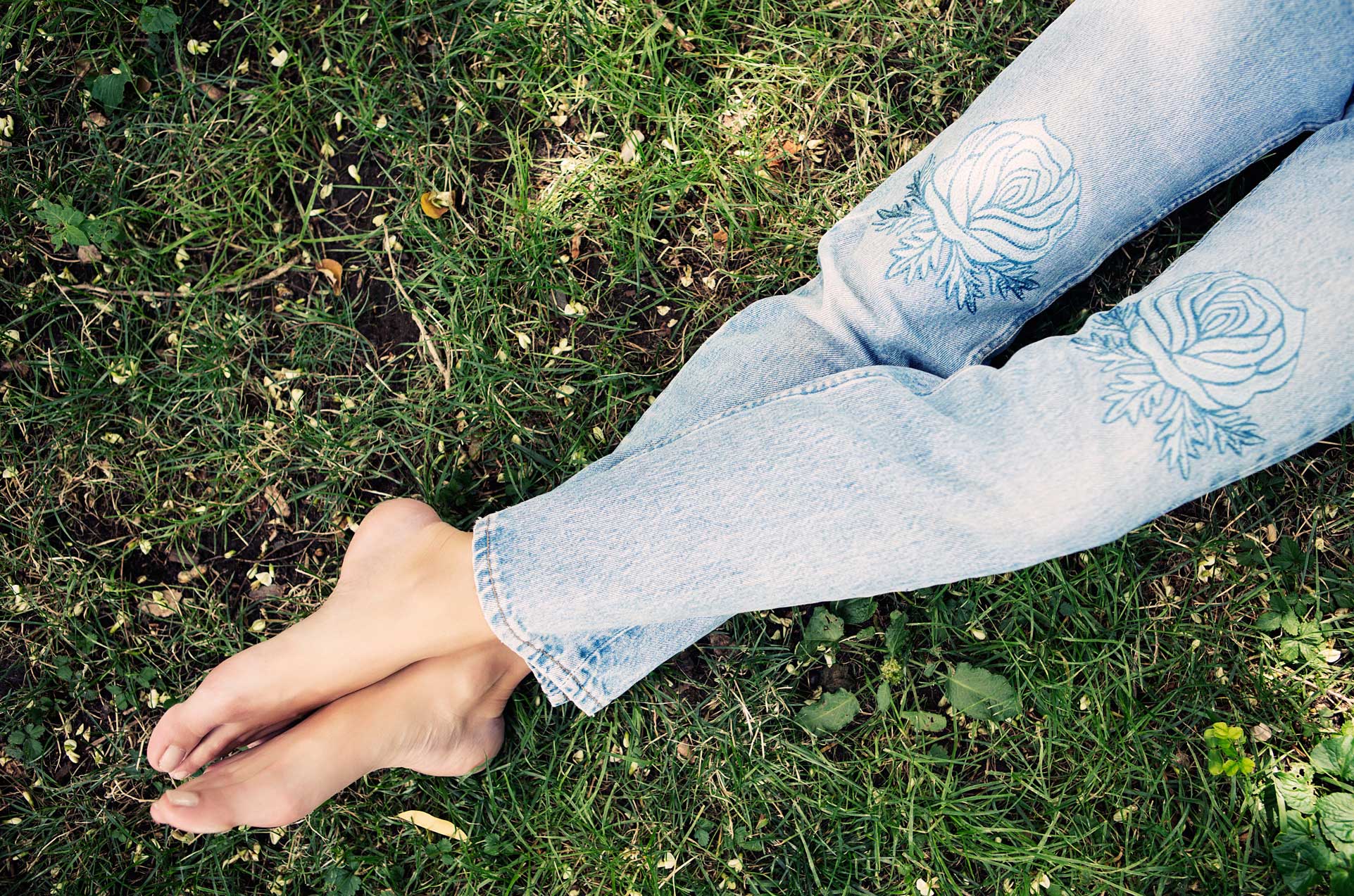 I laughed and emailed Hillary. Before Amsterdam, I had fallen in love with one of the Westernwear-inspired embroidery motifs that she offers at BlissandMischief.com. Called “Song of the West,” it has roses on the knees and a trim that follows both front pockets like little smiles with arrows on each end. Mellower – Hillary’s word – than some of her other patterns that have flowers and cacti chain-stitched wildly from hip to hem, for example, “Song of the West” was easy. Easy for me to love, and easy for Hillary to execute. I was just waiting on the right pair of jeans to come along…