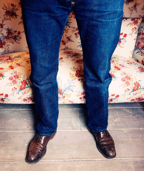 As for the jeans that Derian wears with anything – they’re RRL, raw and slim with a very straight leg and a high rise. Could his affinity for denim have anything to do with the fact that – as we learned – his favorite color is blue? “I guess, but I like pink, too.”