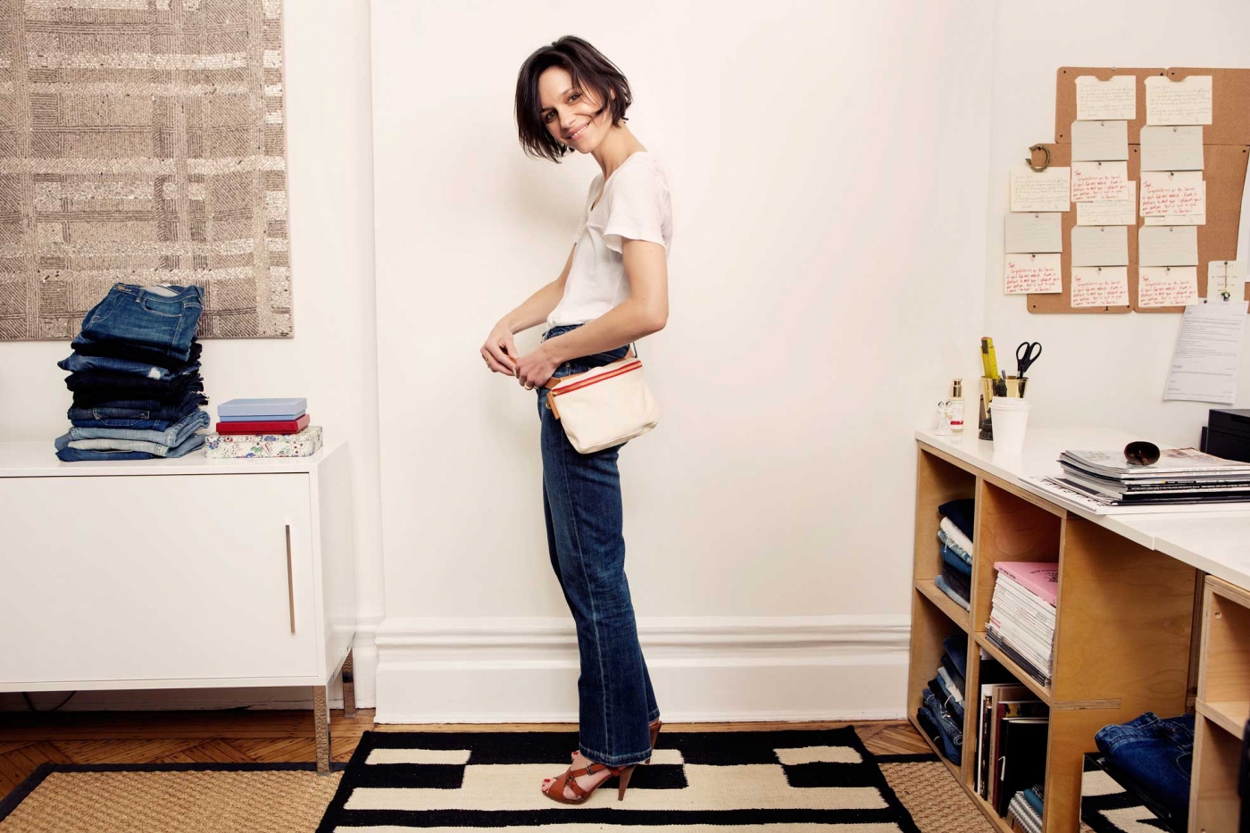 OK, so they aren’t as cropped on me as they are, say, on Alexa Chung herself, but even on me, these jeans are short – and I love them because of it (they really just barely graze the top of of my leather sandals, an ancient pair of Bally heels that I discovered in the Vogue closet a decade ago and then bought immediately because I could imagine myself still wearing them, well, in 10 years). There’s been a lot of web chatter about this collection that Alexa did with L.A. jean-machine AG. A lot. For good reason, actually – it’s good. These jeans, for example: They fit great an they have a lot of what’s next in denim, specifically a higher, not-too-tight waistline and a boot cut leg.