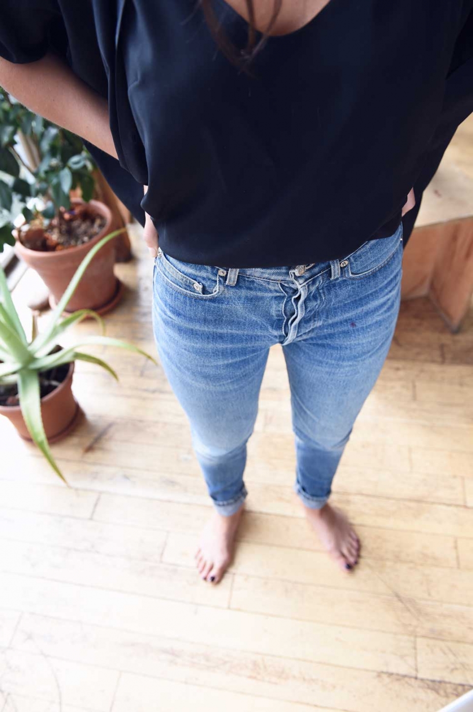 Bibi: Yeah, recently I put my favorite A.P.C.s in the dryer and I can barely get them over my knees now. There’s no stretch in them at all. And they’re so ripped up that if I try and pull them on they’ll just rip more.