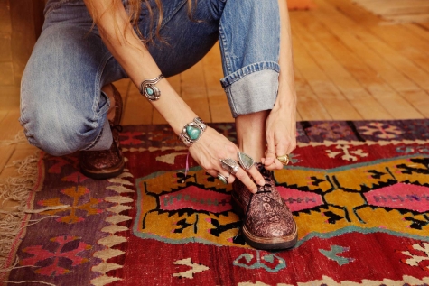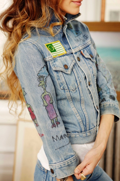 “I rarely ever wear new denim; all of the shopping I do is for vintage,” explained Mara Hoffman, the New York designer whose print-driven clothes are must among women of the global, haute-hippie style persuasion. So where on earth, you ask, did she score the perfect-fitting Levi’s Orange Tabs she’s wearing here? At A Current Affair, the L.A. vintage show that recently started traveling to N.Y. “Hands down the best denim,” she said. And her jacket, which is covered in hand-drawn characters from “The Simpsons”? (Scroll down. Really, it’s something you don’t see every day.) “At Narnia in Williamsburg,” she confided. Write this down, guys. It’s serious intel!