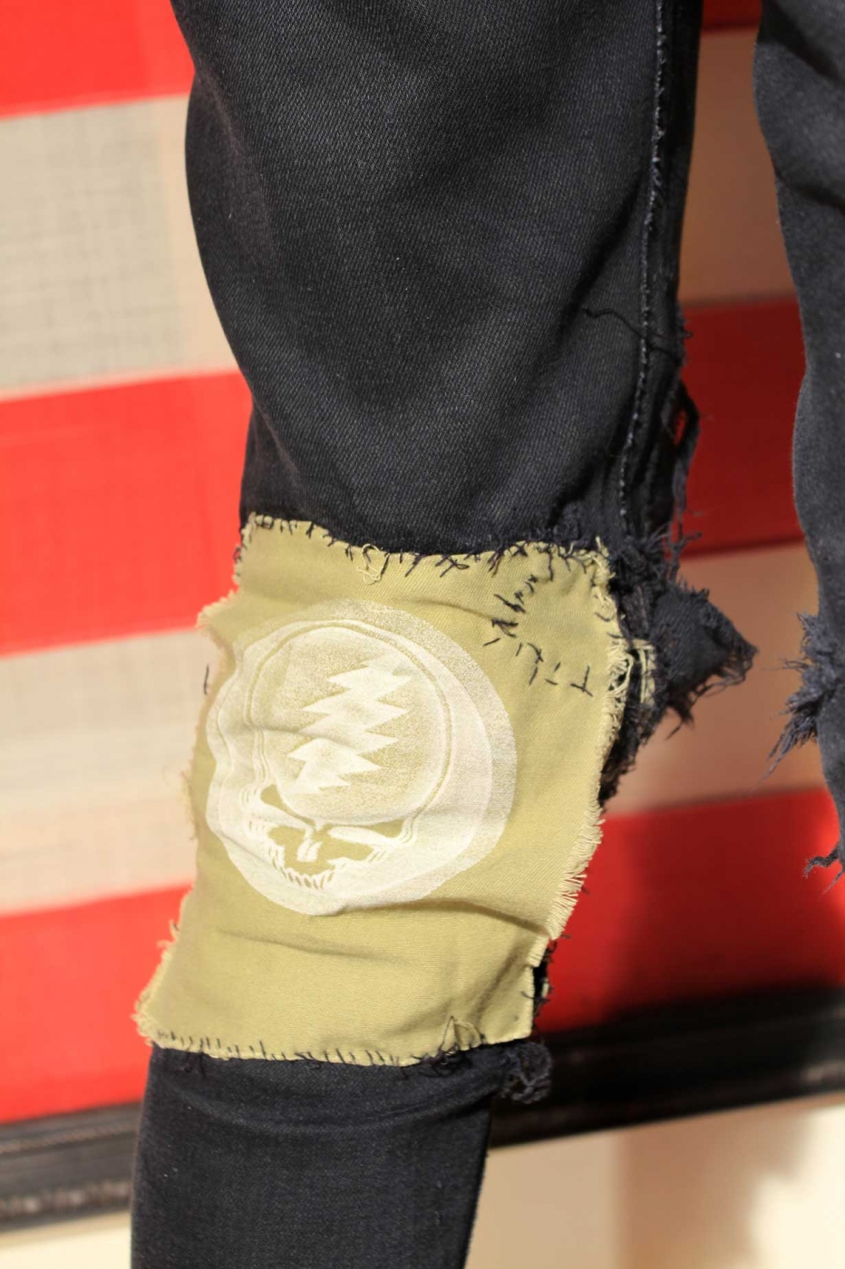 Maybe five years. And once they got one hole, then they really started to go. I’ve repaired the holes five or six times. I even took them to a professional place that does denim repair, but they sort of laughed at me because my jeans were so far gone. They had no way to deal with it. It was going to cost, like, $200! My assistant is a really good seamstress, and so she did some repairs on them for me. And I’ve done some repairs on them myself. And my husband Matthew made me this Grateful Dead patch because I love the Grateful Dead, and so does he. It’s a Steal Your Face skull in army green, which I think is really funny because it kind of looks like a punk patch – like those patches that all the punks sew on to their jackets, for bands like Crass or The Casualities – but mine is for the Grateful Dead. So it’s more of a peaceful patch.